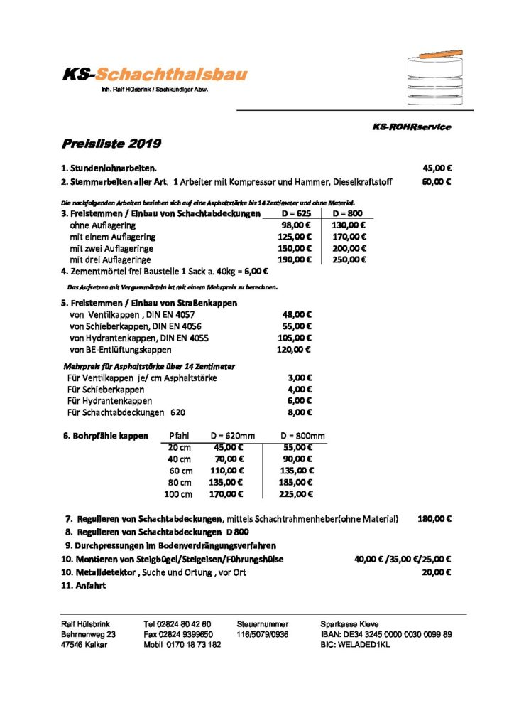 Arbeitsleistung: Freistemmen und aufsetzen von Schachtabdeckungen und Straßenkappen. Sanierung von Schachtköpfen. Montage von Steigbügeln, Steigeisen und Einstiegshilfen.